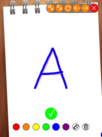 The app have a simple and intuitive interface to allow your kids to browse through all the letters of the alphabet at their pace and draw them with their fingers following an animated model. The app can evaluate the drawn letter to encourage the kid.