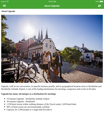 Uppsala blev under 2013 framröstad till Skandinaviens mest hållbara stad av Världsnaturfonden. Genom appen ger vi nu våra lokala arrangörer en ytterligare möjlighet att förbättra sina möten.