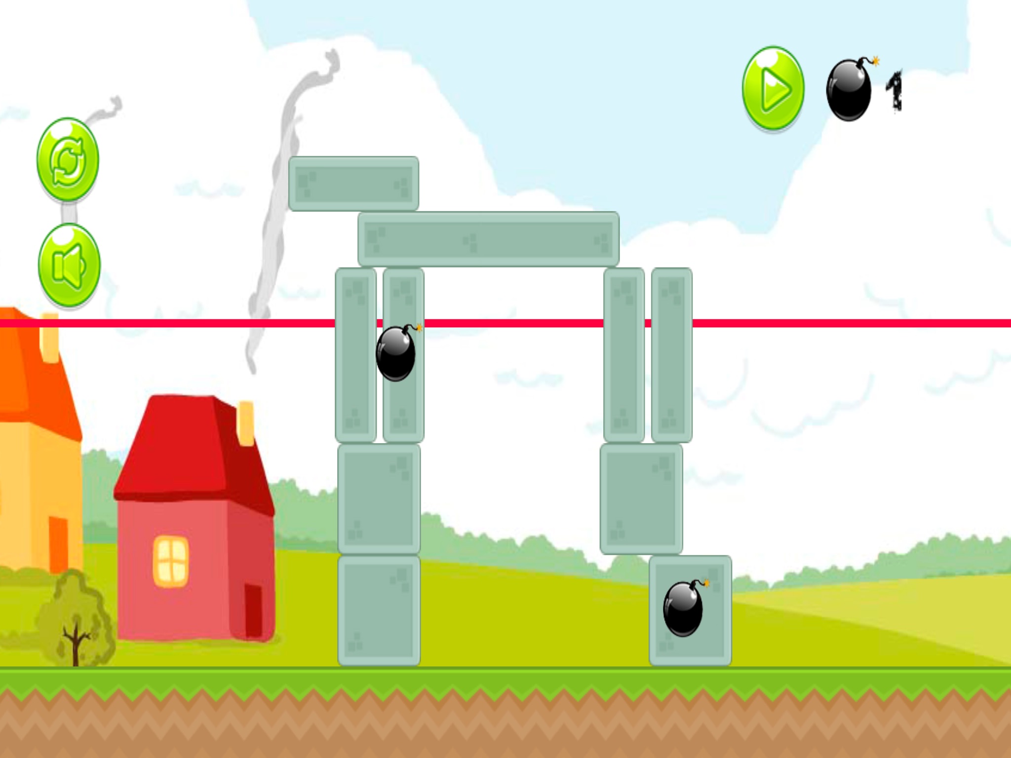 2. Each level, there will be a number of bombs to the top right of the screen. You just tap brick where you want to explode when finished, press the play.
