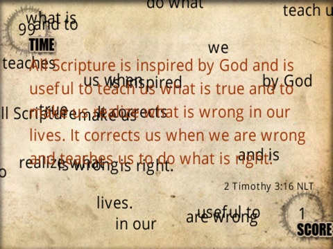 This is a fun way to memorize God’s word! With 30 different levels and 10 different Bible verses you will be busy trying to beat the clock before your time runs out.