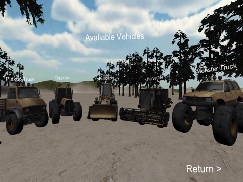 • 5 vehicles (pickup, tracktor, bulldozer, harvester, monster truck)