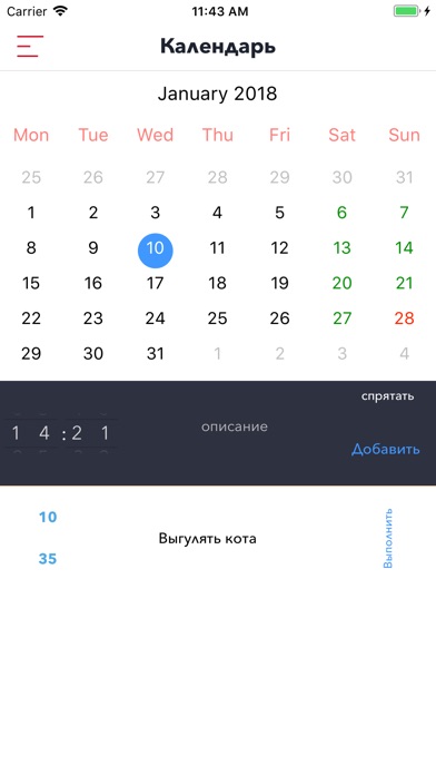Приложение содержит в себе: календарь - что бы ты мог строить планы и не забыть о них, список дел - что бы ты мог визуально контролировать свои проекты и кошелёк - что бы ты мог отслеживать траты и пополнения.