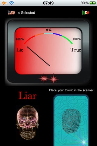 This App is very funny since it speaks with a funny voice, and says to you if you saying the truth or you are lying, with several nice and different answers, by scanning of your finger it detects if you are saying the truth or you are lying.