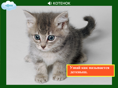Есть мини-игра "Отведи меня домой" (если животное домашнее, то надо его отвести в дом, а если дикое, то в лес). В случае правильного ответа будет одобряющий звук и полетят бабочки. В конце игры можно посмотреть сколько раз ребенок ответил правильно (в верху будут радостное и грустное облачки).