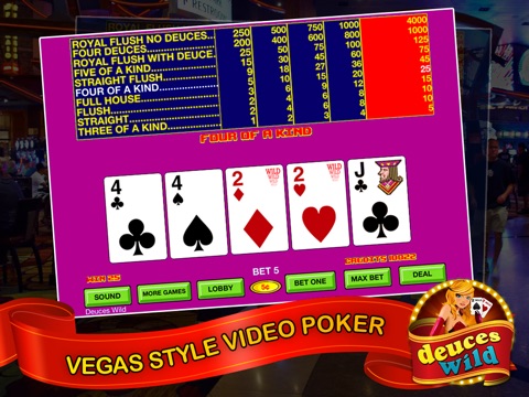 Test your skills and play against the house on your favourite Video Poker game - Deuces Wild. Enjoy the thrilling experience of playing the ORIGINAL video poker game on your iPhone/iPad.