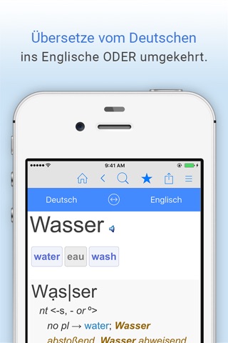 * Wechsele mit nur einem Tap vom Deutsch-Englisch zum Englisch-Deutsch Modus.