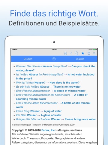 Übersetze Wörter und gängige Phrasen vom Deutschen ins Englische ODER umgekehrt! Das Deutsch-Englisch Wörterbuch von Farlex ermöglicht eine direkte Übersetzung von Sprach- oder Textsuchen mit Audio Aussprachetipps, Definitionen, Beispielsätzen und mehr!