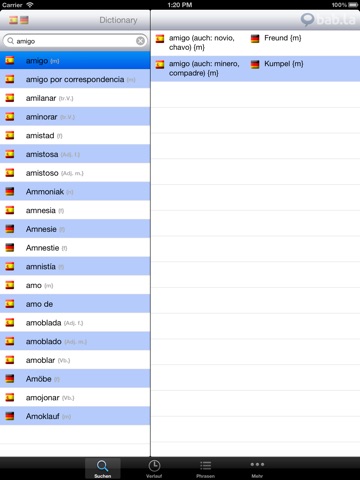 ich bin sehr stark von den bab.la Wörterbüchern beeindruckt und nutze die für englisch und spanisch schulisch und privat. am spanischen App gefällt mir leider nicht, dass es sehr sehr häufig anstürzt bei mir - ein Problem, welches ich mit keiner anderen App habe (die ist die einzige App die ich gekauft habe). trotzdem sehr hilfreich, darum 4 Sterne. hoffe gegen das abstürzten lässt sich was machen.