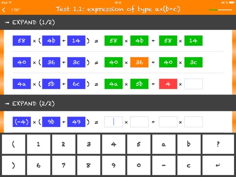 The second part - I TEST MYSELF - provides exercises about expanding and factoring expressions and their use for mental calculation.