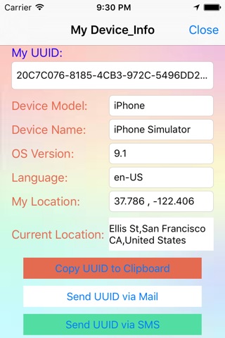 You can copy your UUID in the clipboard to use it in other apps or send it via mail & sms.