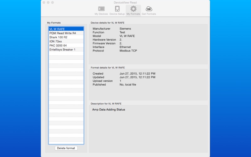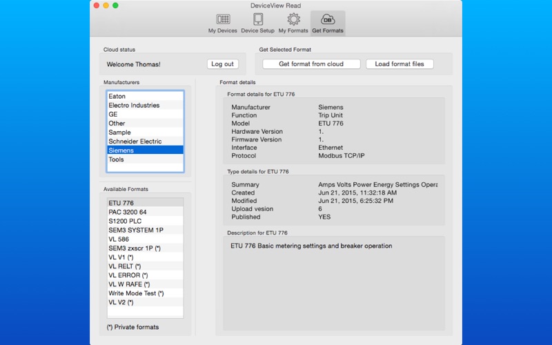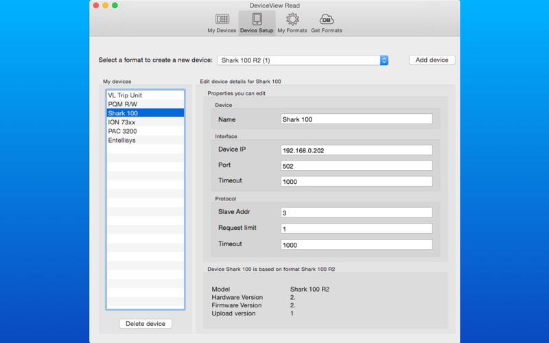 DeviceView for Mac uses the same Device Formats as the DeviceView iOS mobile app. Download device formats from the cloud for fast and easy device setup.