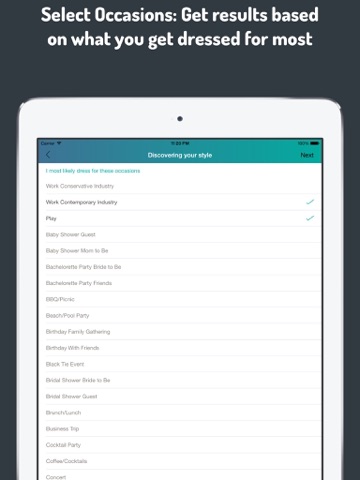 2) Select the occasions you most often dress for so that your daily content stays relevant to your routine.