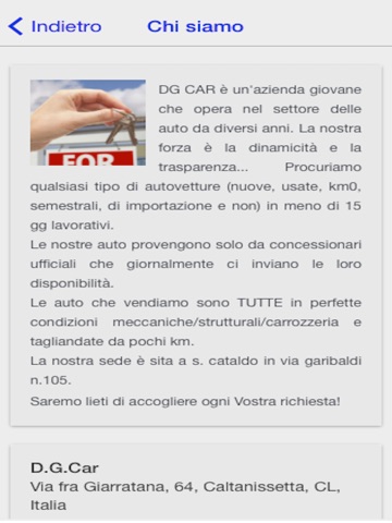 DG CAR è unazienda giovane che opera nel settore delle auto da diversi anni. La nostra forza è la dinamicità e la trasparenza... Procuriamo qualsiasi tipo di autovetture (nuove, usate, km0, semestrali, di importazione e non) in meno di 15 gg lavorativi.