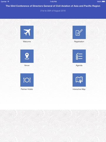 The app is designed for the participants of the 53rd Conference of Directors General of Civil Aviation of Asia and Pacific Region in 2016.