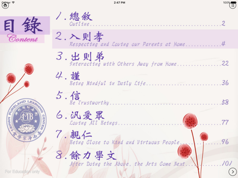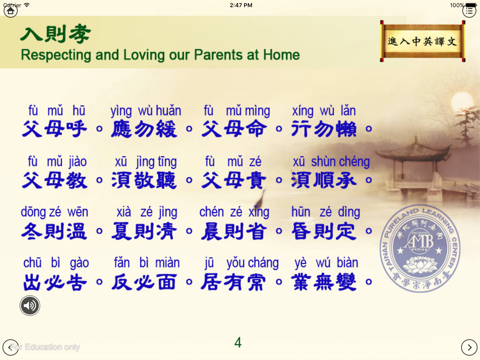 弟子規中英繁體雙語有聲App電子書共計8個單元