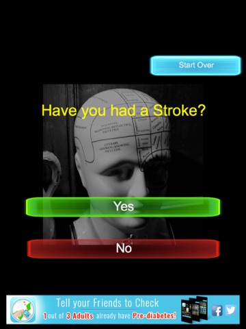 Diabetes is a silent killer, it creates a much higher likelihood for a whole series of misery in its path; cardiovascular events like heart attack and stroke, blindness, foot amputations, kidney disease, etc. Our goal with this app is to pre-screen as many people as possible so we can eliminate those who are undiagnosed. Only once diagnosed can the process of managing this can begin! Share this with EVERYONE you know, it take less than a minute.
