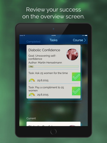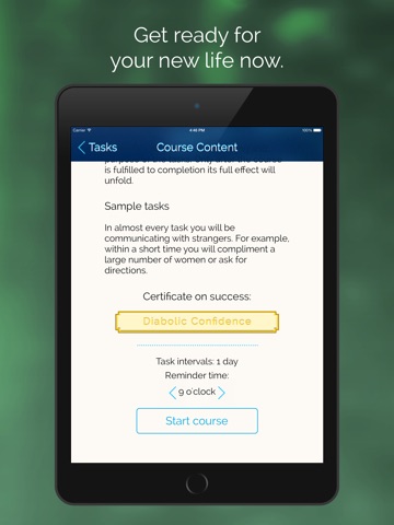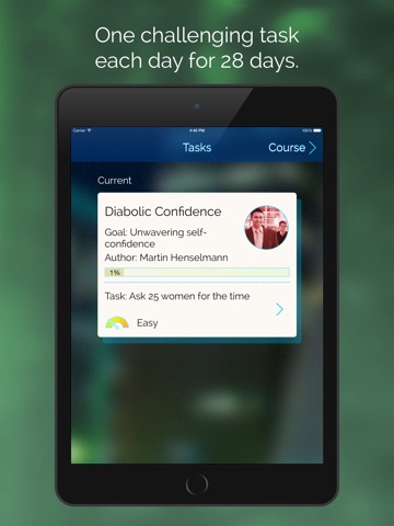 The app helps to perform a task every day by reminding you with notifications and by giving you the chance to exchange tasks or pause for a day.