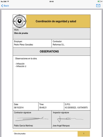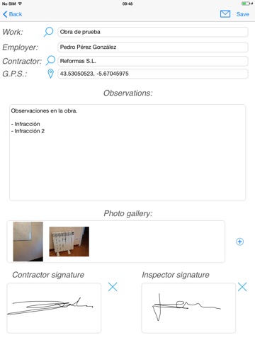 DIADEMA provides a form to describe the work situation, including photographs and signatures of the persons in charge. Finally, all offered in an elegant document.