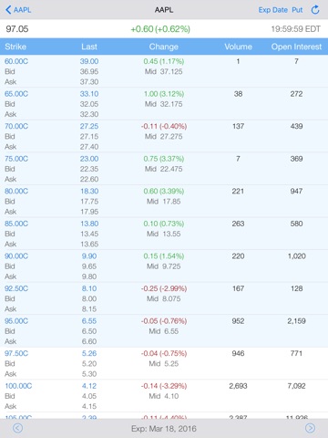 Creating, reviewing, and sharing your options strategies are so easy! Just follow our clear on-screen guidance. You can conveniently modify the strategy according to your own needs, like edit the strike price, change the contract number, etc. With a few clicks and you are all set! Your strategies are automatically saved for further review / research. You can then study the strategy payoff diagram and observe the time decay impact through multi-touch features like pinch-to-zoom, double-touch-reset, two-finger-move, etc. Pressing one finger on the chart for a short moment, you can also bring out a magnifier for precise chart reading. Share the strategies easily by email with just one simple tap!