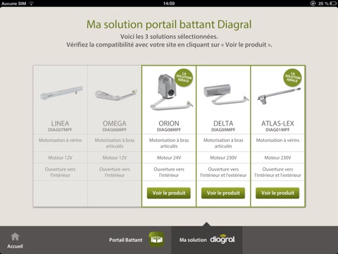 • Vos recherches mémorisées : A tout instant, vous avez accès aux 3 dernières solutions Diagral préconisées. Vous pouvez ainsi vous rendre directement en magasin avec votre solution pour réaliser votre projet.