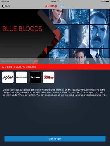 • Dialog Television customers can add their DTV account and watch up to 120 TV channels on the go for FREE
