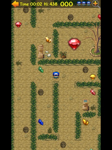 Level 1 - Traditional Garden Maze with earthy footpaths and green shrubbery borders. Find as many diamonds along the way, look out for those dangerous explosive barrels and find the centre of the maze.