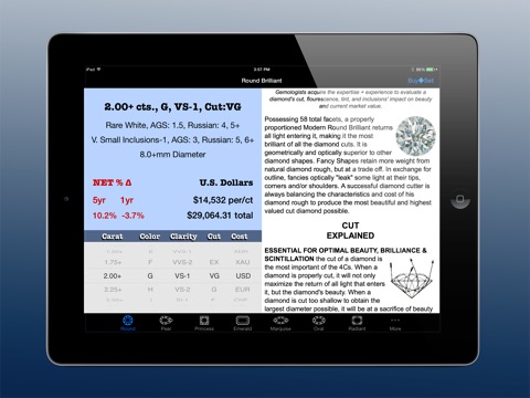 ◆ 4 GRADING SYSTEMS SIMULTANEOUSLY DISPLAYED: the Gemological Institute of America (GIA), International Diamond Council (IDC), American Gem Society (AGS), and the Russian Grading System (TU). The only diamond pricing App to display all 4 international standards!