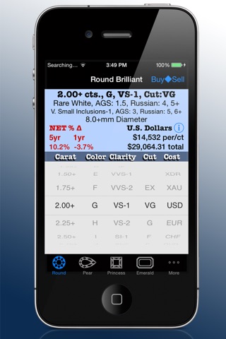 ◆ 4 GRADING SYSTEMS SIMULTANEOUSLY DISPLAYED: Gemological Institute of America (GIA), International Diamond Council (IDC), American Gem Society (AGS), and Russian Grading System (TU). DiamondMaster is the only diamond pricing App that displays all 4 international standards!