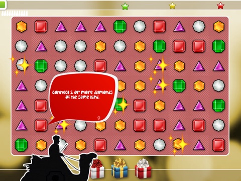 Connect diamonds to match 3 or more horizontally or vertically. Try to match diamonds in the same color as those falling down for more points.