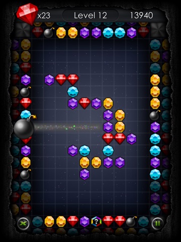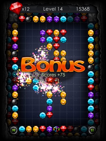 If you found yourself in a difficult situation, the “X” button at the bottom of the screen will give you a hand; it grants access to new play features. Spending a few “Red Diamonds” enables you to use the bomb to explode several stones or “Iron Block”, return a few steps back using the “Undo” or place a missing stone onto the game field.