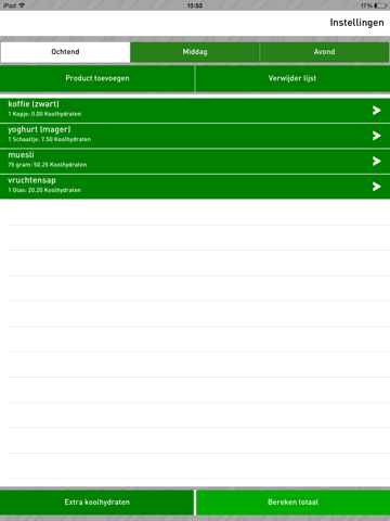 - Je kunt zelf (eigen) producten toevoegen aan de koolhydratenlijst;