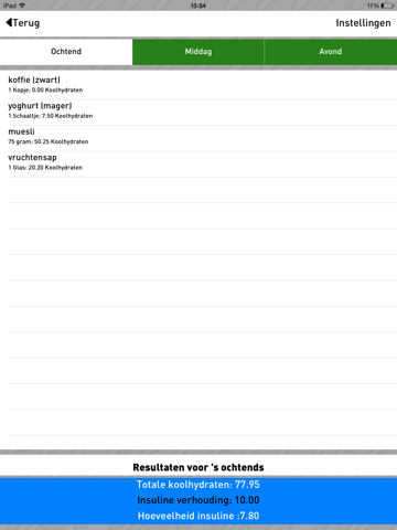 - Telt gemakkelijk alle koolhydraten van een maaltijd op; of… Toegespitst op één doel: makkelijk berekenen van het totale aantal koolhydraten en - indien gewenst - de spuit-indicatie voor jouw hele maaltijd;