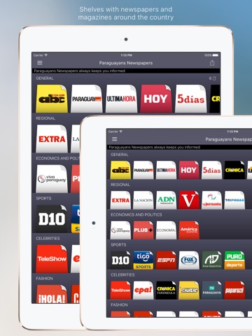 The logos of each newspaper or magazine are the exclusive property of the same. Paraguayan Newspapers only use them in order to be recognized by readers who use the application, to access the information they want.