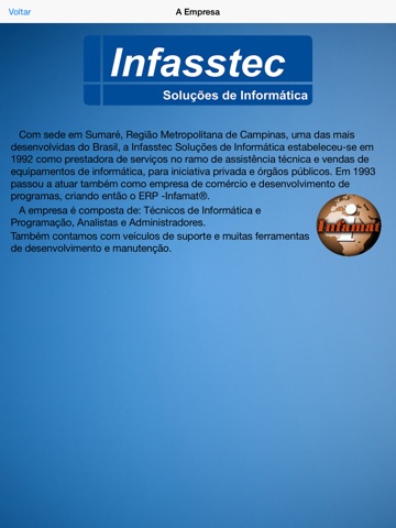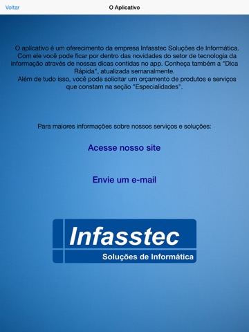 O aplicativo é um oferecimento da empresa Infasstec Soluções de Informática.