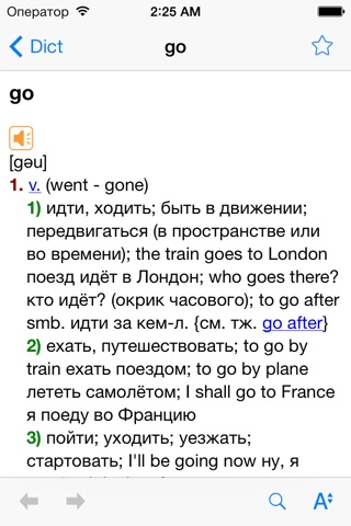 Купил этот словарь, доволен в целом, однако есть баг. Последовательность действий такая: в поиске вверху набираем, например, слово Cuisine. Получаем словарную статью "кухня, стол...". Выделяем слово "стол", нажимаем Lookup. Получаем перевод "стола". Возвращаемся в словарь кнопкой <Dict], переводим следующее за Cuisine слово, "Cuke", а появляется перевод русского слова "столб". И так далее. Также неудобно расположена кнопка изменения размера шрифта: когда нажимаешь большим пальцем правой руки кнопку <Dict], или кнопку озвучат слова, часто она случайно нажимается подушкой ладони.
