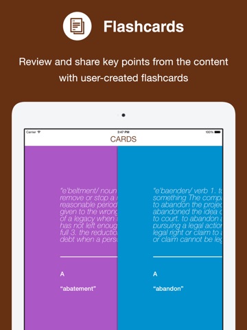 This app contains thousands of terms and expressions that span U.S., U.K., and international law. Clear definitions and examples help to explain complex legal terminology from the various types of legal procedures. Create a study guide for yourself by searching for specific terms and bookmarking them to review later. Personalize the dictionary by saving your favorites or important legal terminology. Remembering key terms is a breeze with this helpful app.