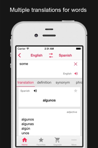 This app is ideal for language nuts: You can dig deep in a lot of languages, get definitions, synonyms and examples. Touch any words and see the translation immediately. Select any part of the text and translate immediately.