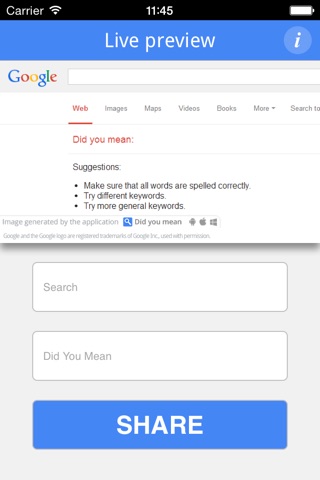 Did you mean allows you to generate your own "Search" image with a custom text and share it with your friends