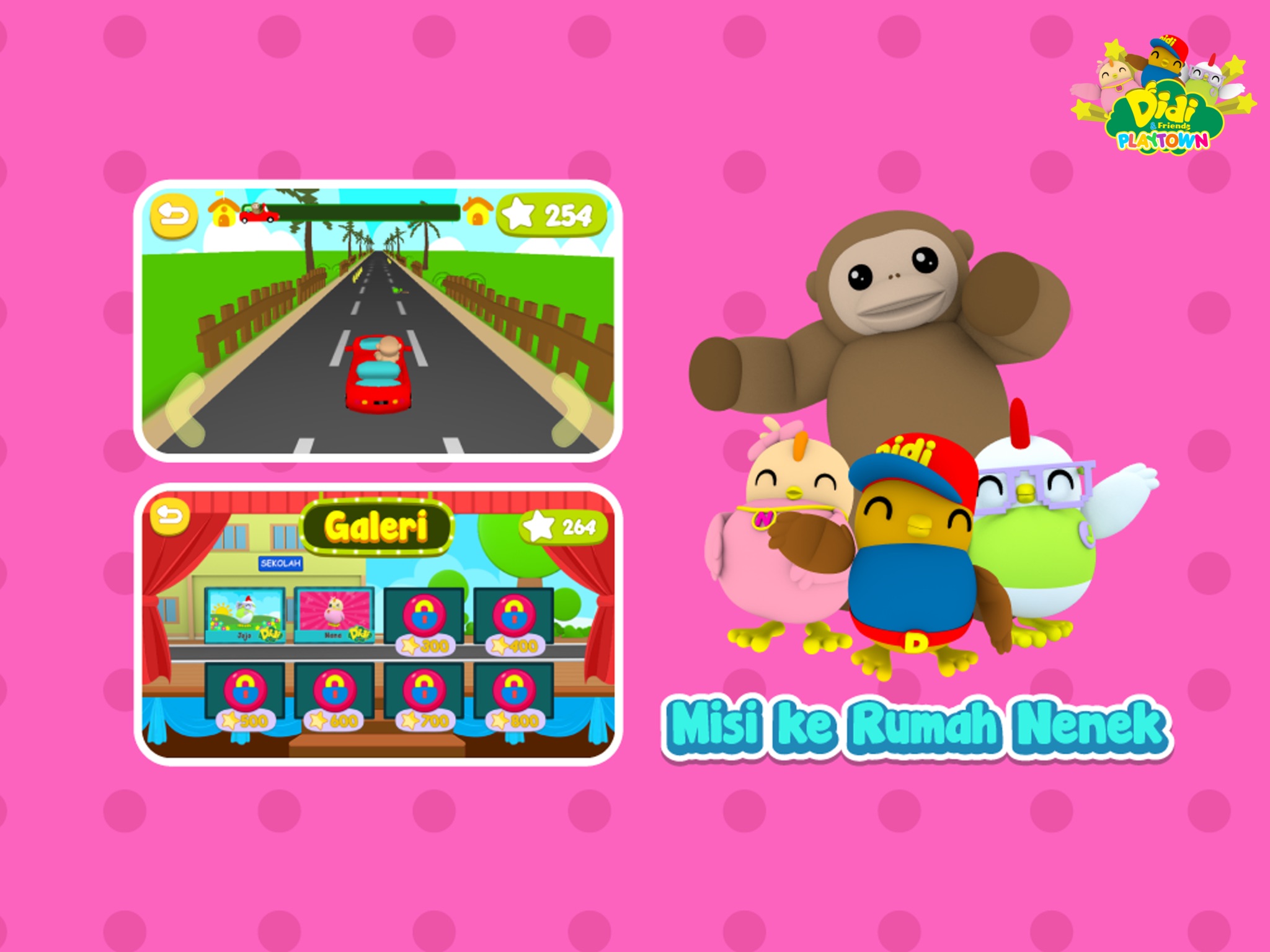 Wow! In this game, drive a little red car and go on a mission to Grandmas house. Collect as many stars as you can along the way to get special rewards from the Didi & Friends character gallery. Collect them all!