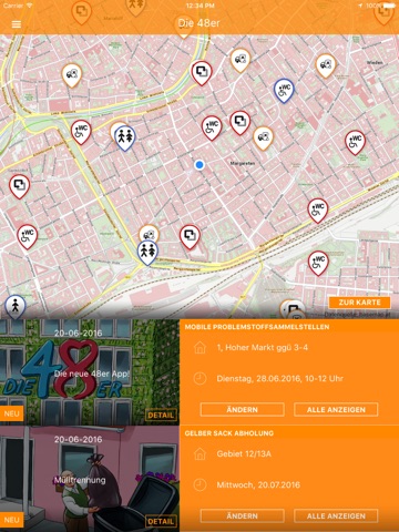 Die 48er-App bietet die wichtigsten Informationen zur Entsorgung von Abfällen in Wien, zum 48er-Tandler, zum Fundservice oder zu den Standorten der nächsten öffentlichen WC-Anlagen. Die öffentlichen Standorte der MA 48 können auf dem Stadtplan angezeigt werden. Ein Kalender informiert Sie über die nächsten Sammeltermine der mobilen Problemstoffsammlung oder über die Abholung der gelben Säcke für Plastikflaschen in den angeschlossenen Gebieten. Benachrichtigungen zu Veranstaltungen und weiteren Termine der MA 48 erhalten sie über Push Nachrichten. Die Termine können Sie im App-Kalender und/oder in Ihrem persönlichen Kalender speichern. Das Mist-ABC sowie der einfache Kontakt zur MA 48 runden das Angebot ab.