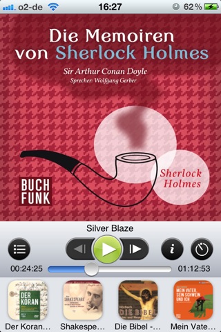 Das kann Ihnen hier nicht passieren! Diese App ist völlig kostenlos und Sie können die erste Geschichte Silver Blaze hören. Sollte Ihnen das Hörbuch gefallen, so kaufen Sie einfach die anderen Geschichten für einen unschlagbaren Preis. Wenn ihnen das Hörbuch von Anfang an nicht zusagt, dann sind Sie kein Risiko eingegangen!