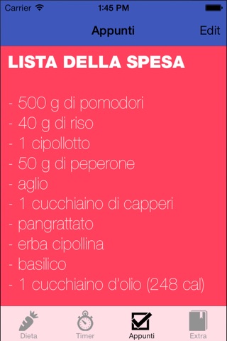 Allinterno della applicazione troverete inoltre un timer e la possibilita di appuntare note e lista della spesa.