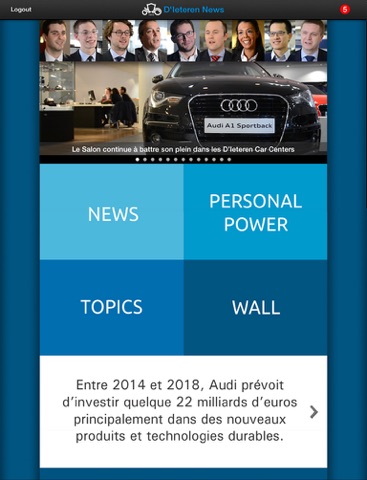 D’Ieteren News est une application réservée aux membres du personnel de D’Ieteren Auto (distributeur en Belgique des marques Volkswagen, Audi, Škoda, SEAT, Bentley, Lamborghini, Porsche et Yamaha).