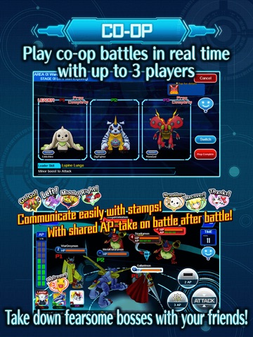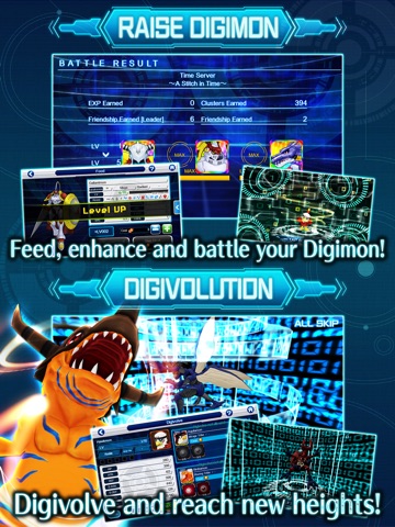 Lead your Digimon to victory as you make use of their Leader Skills, Signature Skills and Legacy Skills! With an awareness of their Attributes and Resistances overwhelm your foes.