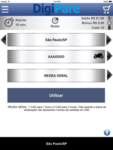 Esta aplicação possibilita a emissão de tiquetes de estacionamento rotativo (Zona Azul Digital) nas cidades atendidas pelo sistema DigiPare, www.digipare.com.br. A Lista das cidades está disponível diretamente no aplicativo.