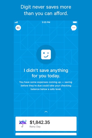I got this to try to save some additional money. At first it was good. $2 here $4 there not that big a deal. It is based on what you spend. So say one week you dont spend a lot because you are waiting for payday or have an upcoming expense. The app then takes that into account and saves more. It took $60 out of my account over 3 days. Which defeats the purpose of me not spending money that week. You can set up how much it takes out, but then what is the point of the app if you have to micro manage it. Im sure for a lot of people it is helpful. So dont hesitate to give it a try. Just didnt work out for me.