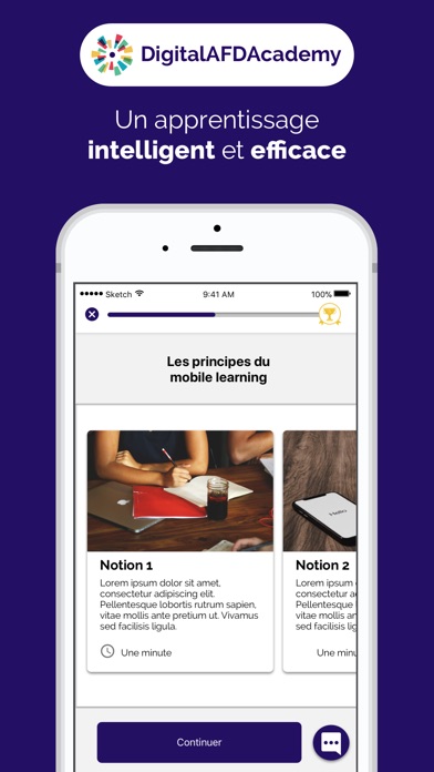 DigitalAFDAcademy permet d’accéder de manière ludique à de nouvelles connaissances sur le numérique et sur les thématiques portées par l’AFD. Cette application s’intègre dans un programme d’acculturation au numérique afin de donner à l’ensemble des collaborateurs les mêmes bases sur la stratégie numérique de l’AFD, le management dans un monde numérique, les bonnes pratiques d’utilisation des outils numériques…