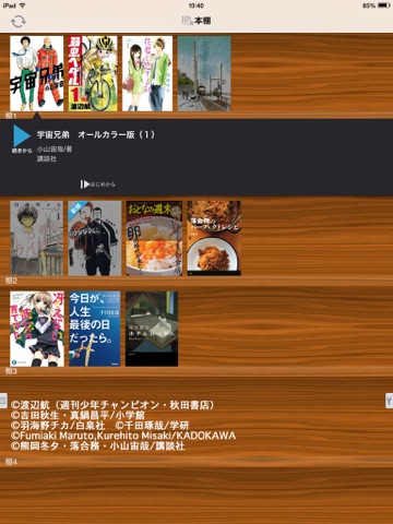 1)最大5台の端末で利用でき、各アプリ間で本棚が同期します。