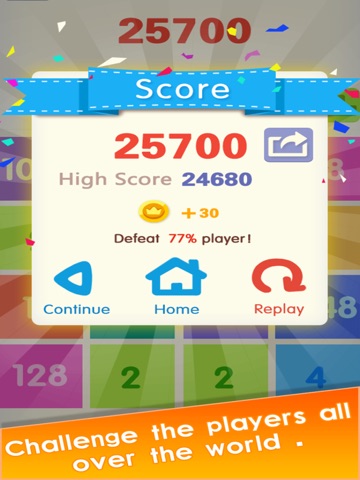 3.Merging Digit: click on the blank space, square to the margin together, the same digital collision together