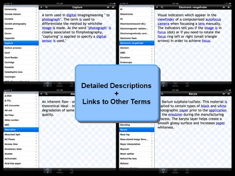 Digital Photography Glossary is an application containing over 1500 digital photography and image processing related glossary and keywords. It is an excellent preparation tool for everyone who is learning photography or keen to know more about digital image processing.